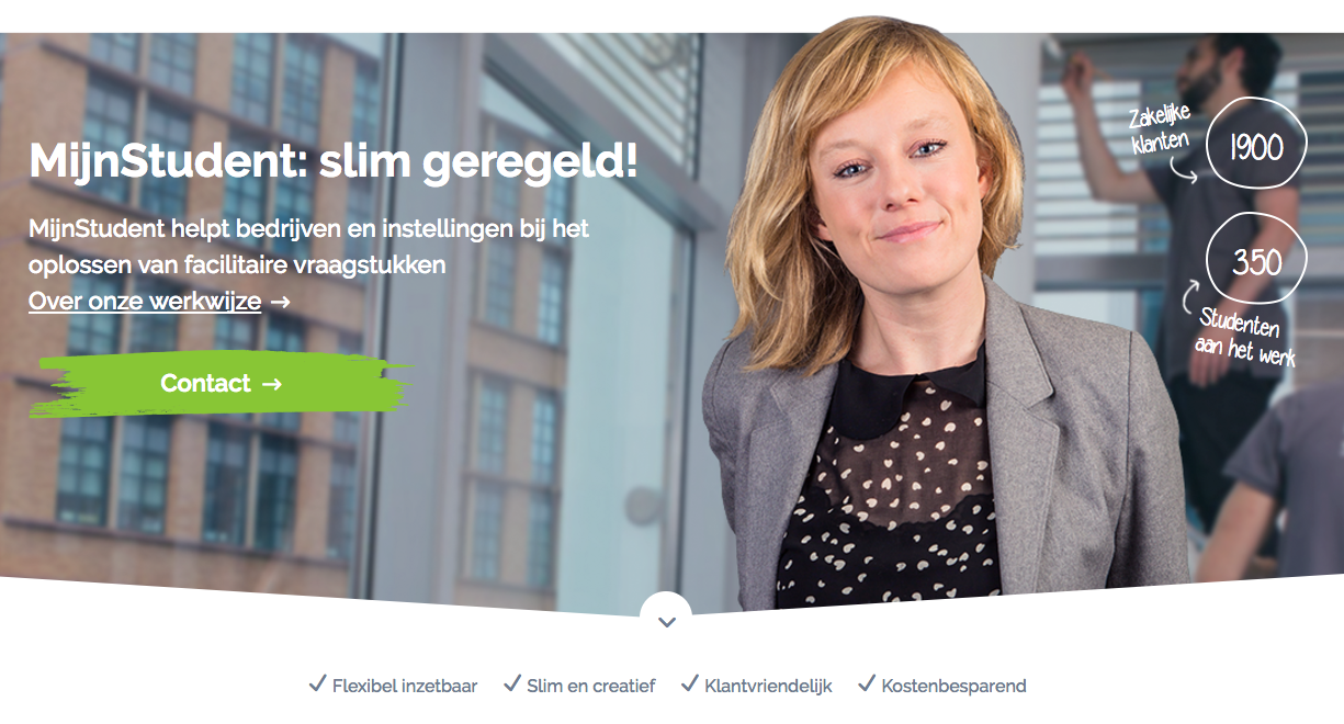 The main target group was the business customer. I took their workflow as a guideline for the design of the flow of the website. Starting points were building trust (with reviews, customer cases and additional information if someone wants to read further) and conversion. The main conversions are call and request quote. Managing these conversions had to be combined with a logical flow in which potential customers could quickly see what Mijnstudent does exactly, and what they can do for them. The secondary target group was the student. To make the site attractive to potential employees, the students were given their own landing page, optimised for experience, team spirit and vacancies.